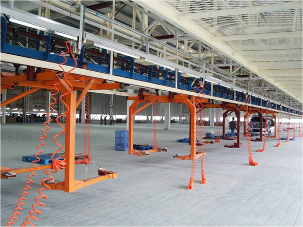 The conveying system includes: 1. PBS system, using friction conveying system for conveying, storing and sorting the body after painting; 2. SUV interior assembly line adopts CPC+ air friction conveying system, interior craft chain adopts CPC, interior - The chassis line and the empty holding device are returned by air friction. 3. The transfer device automatically completes the transfer of the body from the painting slip to the PBS trolley and the interior line after the paint is moved. 4. The PBS identification and control system uses the field bus. For easy maintenance and system debugging.