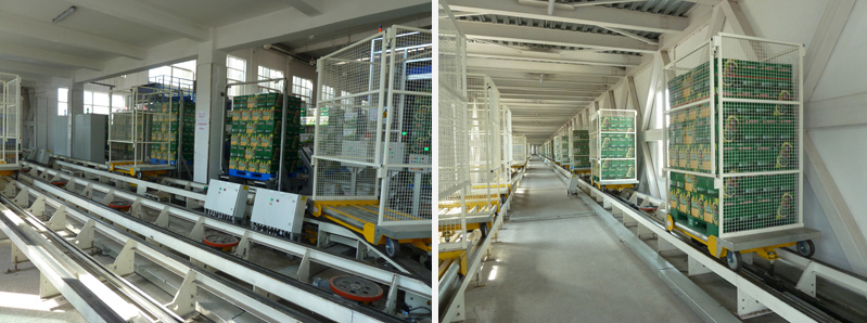 The project consists of various production lines to the carton conveyor system and centralized palletizing system in the centralized palletizing area, the centralized palletizing to the logistics subsystem of the logistics warehouse area, the logistics warehouse area transportation system, and the WMS management system hardware.