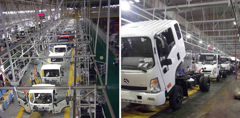This assembly line is used for interior assembly, chassis assembly, flat cargo container assembly, self-unloading cargo box assembly and other assembly processes for CGC1047 and other vehicles. Colleagues also include the assembly of engines and rear axles, with an annual output of 60,000 vehicles. The production cycle is 3.5 points/car, and the beat is 3 points/car.