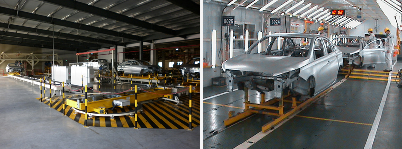 The workshop production line passes the maximum body-in-white weight: 550Kg/set.