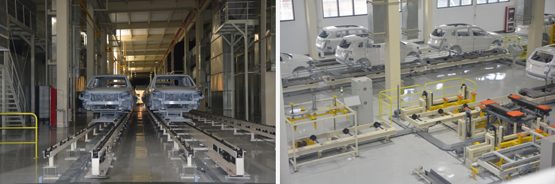 The workshop production line passes the maximum body-in-white weight: 500Kg/set.